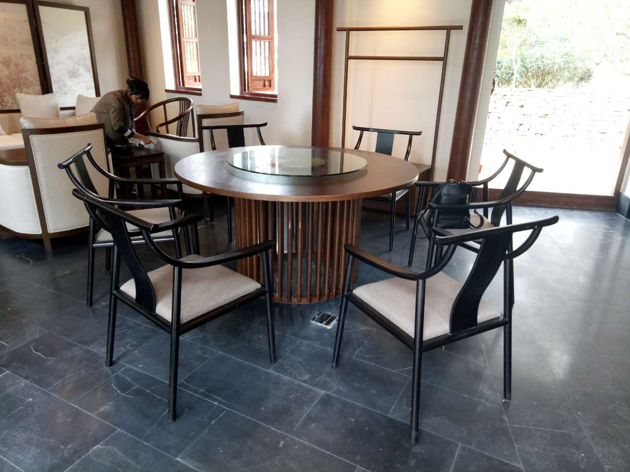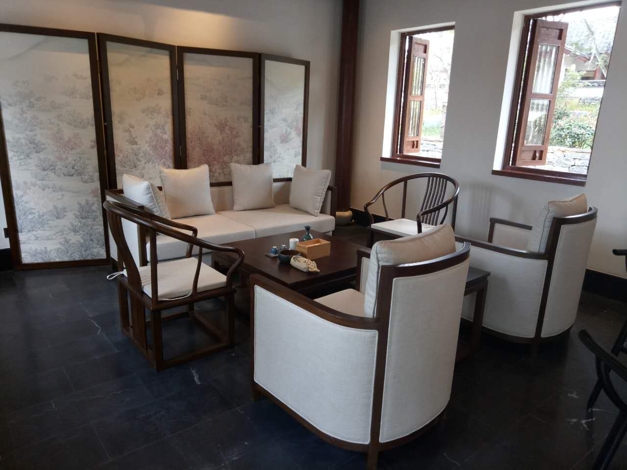 家具裝運(yùn)當(dāng)天,正受臺(tái)風(fēng)莫蘭蒂影響,大風(fēng)大雨。工作人員冒雨搭蓋油布,將家具包裝妥帖避免淋雨,裝貨到凌晨三點(diǎn),千辛萬苦送達(dá)貴州,確保酒店如期開業(yè)。由于酒店是散居式的房屋,內(nèi)部通道狹小,不允許裝運(yùn)車輛通行,工人們只能用肩扛,用手搬,一件一件搬到酒店的各個(gè)角落。期間,工人們不喊苦叫累,不折不扣地完成任務(wù),受到了顧客的一致好評(píng)。這批家具是采用老榆木及紅橡實(shí)木制作的,質(zhì)地適宜,外觀簡潔美觀,受到了客戶的青睞。