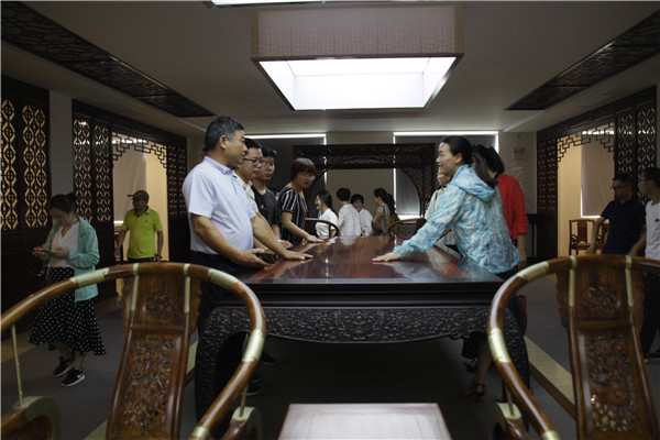 一行人對公司傳承和發(fā)揚紅木文化,精益求精,精雕細琢的工匠精神大加贊賞。同時,就工業(yè)旅游項目的創(chuàng)建和進一步完善等作了溝通交流,互相學習提高。