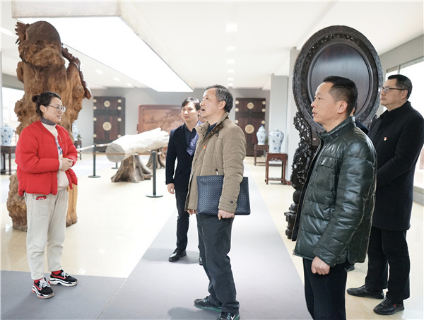 嚴(yán)吉丹主席一行參觀了中國蘇作紅木文化博覽園,感受了傳統(tǒng)手工業(yè)企業(yè)獨特的文化魅力,對匯才紅木作為“中國蘇作紅木傳承企業(yè)”在傳承中國傳統(tǒng)文化和推動企業(yè)自身發(fā)展過程中的文化融合與創(chuàng)新給予了充分肯定,大加贊賞。