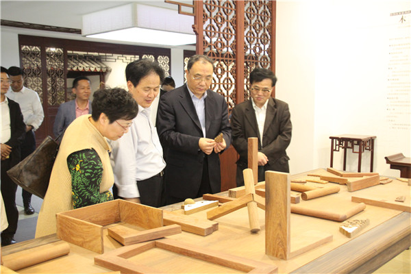 領(lǐng)導(dǎo)一行參觀考察了蘇作紅木歷史文化及蘇作紅木技藝傳承,對公司創(chuàng)建蘇作紅木文化博覽園,以及營造的濃厚企業(yè)文化氛圍和蘇作紅木傳承給予了充分肯定。