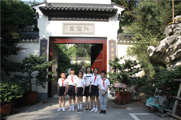 參觀交流完成后,師生們在沁檀園門口合影留念。