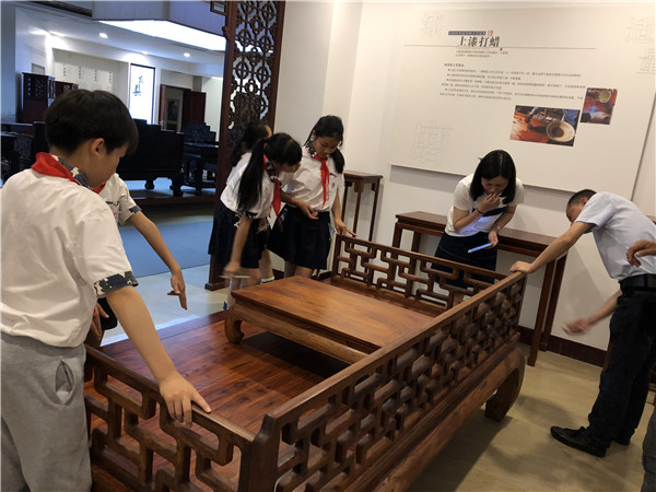 師生們詳細(xì)了解了蘇作紅木家具的榫卯結(jié)構(gòu)類別、用途、特點(diǎn),以及榫卯結(jié)構(gòu)的制作方法和過程,對家具榫卯結(jié)構(gòu)的精妙和蘇作紅木家具的制作技藝贊嘆不已,同時,對中華民族的博大精深文化內(nèi)涵和勤勞智慧感到自豪。