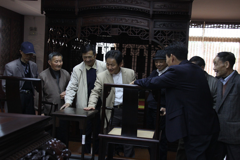 老教師一行首先在黨建活動室召開了座談會,潘福初董事長介紹了公司的情況,以及近年來經(jīng)營發(fā)展和著重建設(shè)企業(yè)文化、工業(yè)旅游的做法。老教師們對公司的經(jīng)營發(fā)展和文化旅游建設(shè)給予了充分肯定。在公司博物館和沁檀園參觀中,老教師們對紅木家具和紅木文化津津樂道,紛紛贊賞,“在這一片工業(yè)園區(qū)中竟然有這么一處展示紅木發(fā)展歷史和雅致的園林,實在是傳統(tǒng)文化的絕佳傳承!”