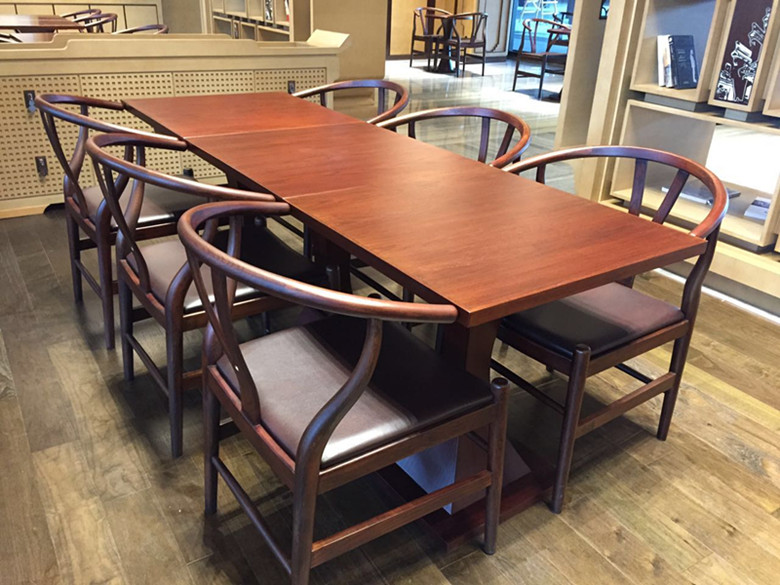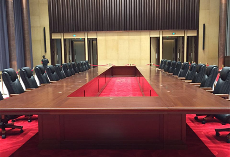 在這次峰會上,除了主會場的沙發(fā),咖啡廳的所有紅木家具以外,最具代表性的當(dāng)屬長16米,寬3.6米的會議長桌,它是匯才發(fā)展歷程中制作的最長會議桌,耗時1個多月。
