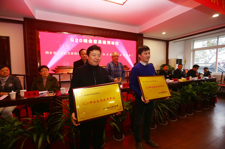 會(huì)議表彰了協(xié)會(huì)2016年度先進(jìn)企業(yè)和先進(jìn)個(gè)人,表決通過了新入會(huì)會(huì)員和人事變動(dòng)。匯才紅木榮獲“G20國(guó)際峰會(huì)家具供應(yīng)商”、“傳承文化 創(chuàng)新開發(fā)企業(yè)”、“園林化示范企業(yè)”、“紅木產(chǎn)業(yè)魯班精神傳承人”稱號(hào)。