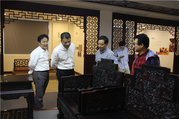 徐剛副市長在聽取公司廠區(qū)改造工程項(xiàng)目情況匯報(bào)后,實(shí)地查看了項(xiàng)目用地和工程進(jìn)展情況,充分肯定了匯才紅木“傳承蘇作紅木文化,創(chuàng)新紅木制作技藝,不斷提升自我”的精神。同時(shí),對(duì)項(xiàng)目改造工程提出了意見和建議。