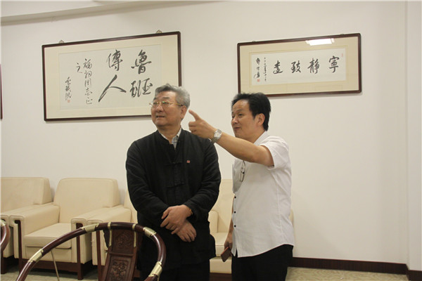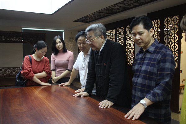 中國(guó)著名書(shū)法家章柏年,中國(guó)書(shū)法家協(xié)會(huì)會(huì)員、匯才紅木黨建指導(dǎo)員張偉,韓天衡入室弟子、中國(guó)書(shū)法家協(xié)會(huì)會(huì)員呂燮強(qiáng),匯才紅木董事長(zhǎng)潘福初等陪同。