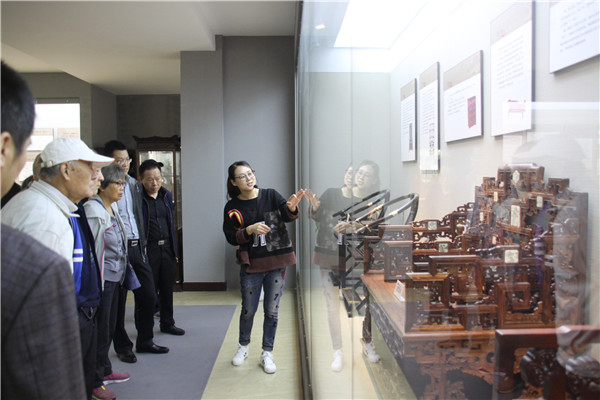 老同志們參觀了公司的蘇作紅木博物館和蘇式園林沁檀園,對公司濃厚的紅木文化氛圍和蘇作紅木制作技藝大加贊賞。