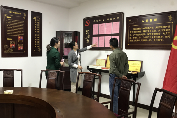 領(lǐng)導(dǎo)們實(shí)地查看了公司的黨建宣傳欄、紅色長廊、黨員活動(dòng)室、黨員高技能人才工作室和黨群聯(lián)心室等紅色陣地,對(duì)公司黨建工作給予了充分肯定。特別是黨員活動(dòng)室結(jié)合紅木文化、紅木元素的全新改版和黨員高技能人才工作室的成功運(yùn)作,黨群聯(lián)心室的談心活動(dòng)等,獲得了領(lǐng)導(dǎo)們的點(diǎn)贊和一致好評(píng)。